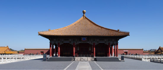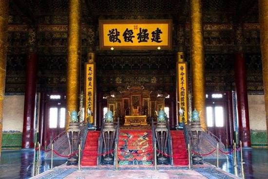 中和殿,故宫外朝三大殿之一,位于紫禁城太和殿、保和殿之间。始建于明永乐十八年(1420年),明初称华盖殿,嘉靖时遭遇火灾,重修后改称中极殿,现天花内构件上仍遗留有明代“中极殿”墨迹。清顺治元年(1644年),清皇室入主紫禁城,第二年改中极殿为中和殿。殿名取自《礼记·中庸》:“中也者,天下之本也;和也者,天下之道也”之意。