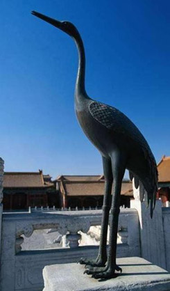 太和殿前的铜鹤、铜龟等都是香炉。铜鹤共一对两只,设置于一对铜龟之前,与铜龟一起象征江山永固、福寿绵长。铜鹤高 1.98 米,背上有活盖,可以打开放入香料,香烟可以从铜鹤口部飘出。