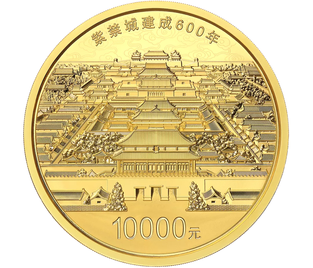 其中,1 公斤圆形金质纪念币,面额 10000元,直径90毫米,最大发行量100枚,背面图案采用紫禁城由北向南的俯瞰景象。作为我国古代宫殿建筑发展的集大成者,紫禁城在建筑技术和建筑艺术上代表了中国古代官式建筑的最高水平,1公斤金币就采用了紫禁城的俯瞰景象。紫禁城集中反映了中国的传统礼制思想与文化,其建筑的布局、形式、装饰等无不体现着中国的传统特色,成为东方建筑史上的典范,同时也是研究中国政治经济、社会历史与哲学思想的文化宝库和世界文化遗产中一座绝无仅有的丰碑。紫禁城的恢弘气势,以及中华优秀传统文化精神内核,在1公斤圆形金质纪念币的图案上一览无遗。