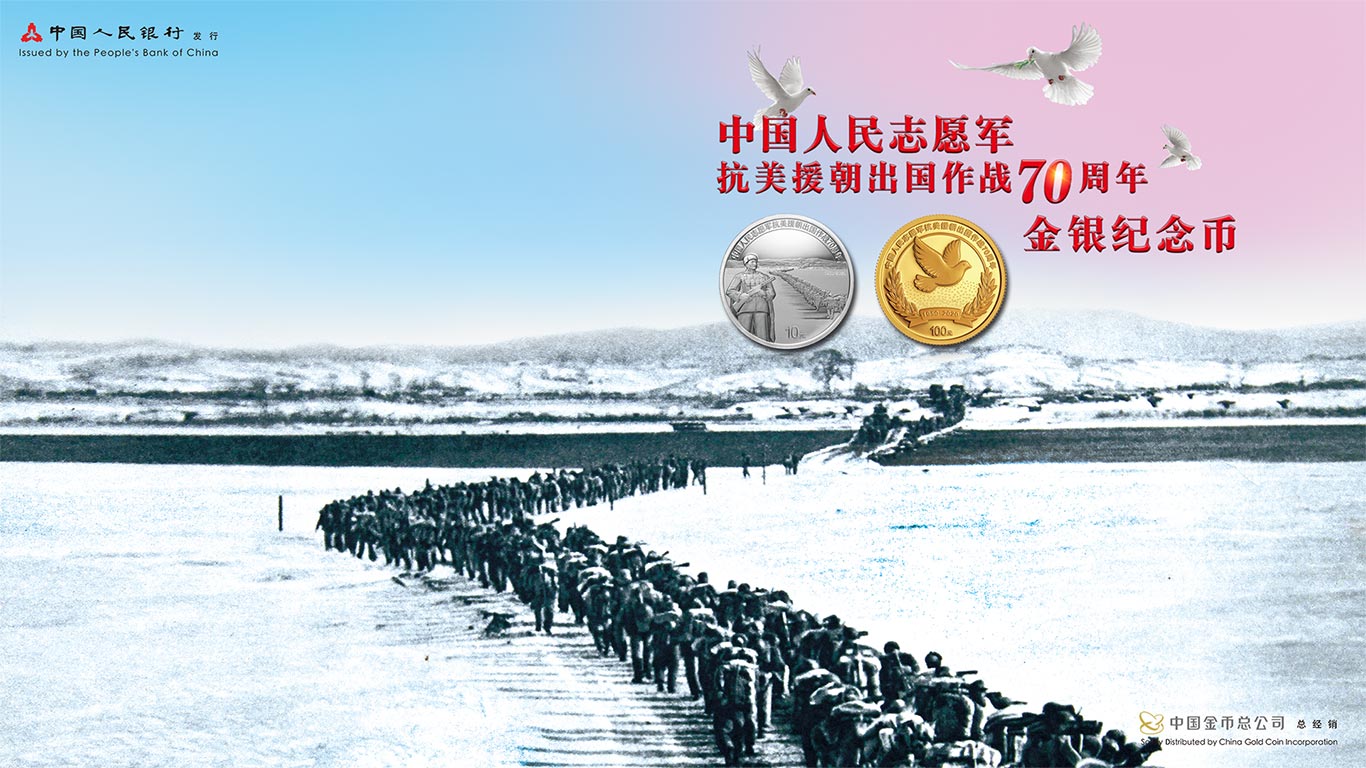 中国人民志愿军抗美援朝出国作战70周年金银纪念币图案