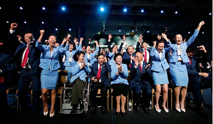 2017年12月15日,北京冬奥会会徽“冬梦”和冬残奥会会徽“飞跃”正式亮相。