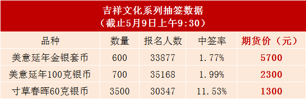 今年的吉祥文化是分两批发行,其中美意延年、寸草春晖金银币是第一批,5月9日发行,目前金币云商正在火热抽签中!抽签入口戳这里