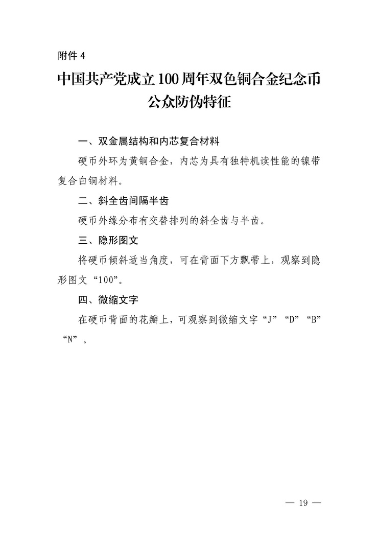(四)双色铜合金纪念币公众防伪特征见附件4。