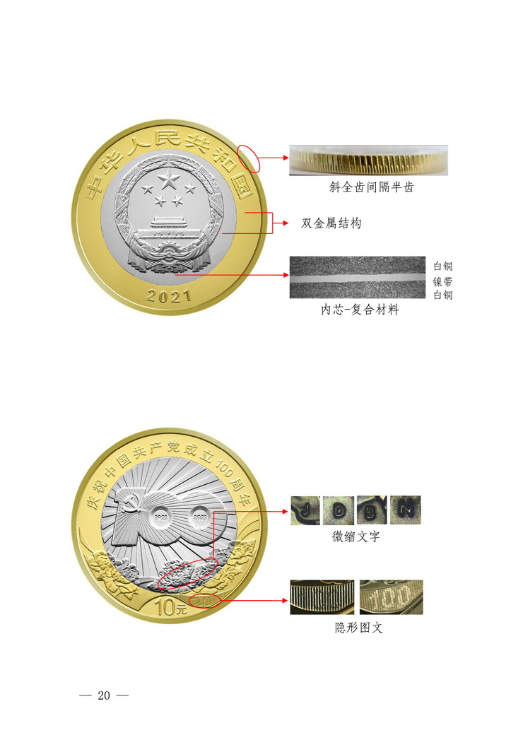 4.中国共产党成立100周年双色铜合金纪念币公众防伪特征