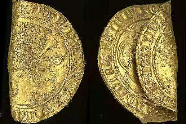 这两枚金币是在诺福克郡的里弗姆(Reepham)小镇附近出土的,包括一枚23克拉的“豹样”金币(leopard gold coin)和一枚“贵族”金币(noble gold coin);两者发现时都呈对折状,并埋在地下,彼此相距约150米的距离。