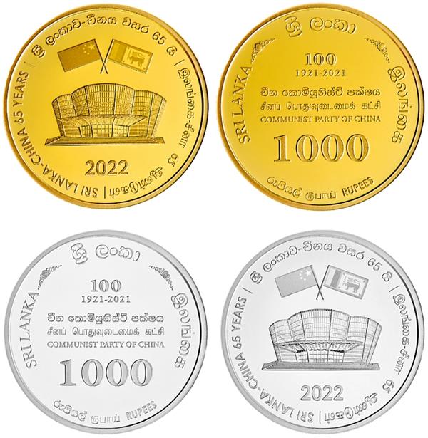 为庆祝中国共产党建党100周年暨中斯建交65周年(2022年2月7日),斯里兰卡中央银行联合中国印钞造币公司,专门设计、铸造了一套“百年华诞、千秋伟业”纪念金银币,隆重纪念中斯两国、两党及两国人民源远流长、历久弥坚的深厚友谊。这是斯里兰卡央行1950年成立以来首次为外国政党诞辰铸造纪念币。