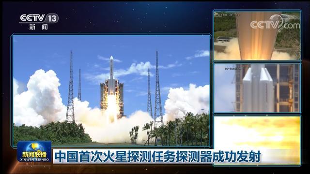 2020年7月23日中午12时41分,我国在文昌航天发射场用长征五号遥四运载火箭成功将首次火星探测任务的“天问一号”探测器送入预定轨道,开启火星探测之旅,也迈出我国行星探测的第一步。
