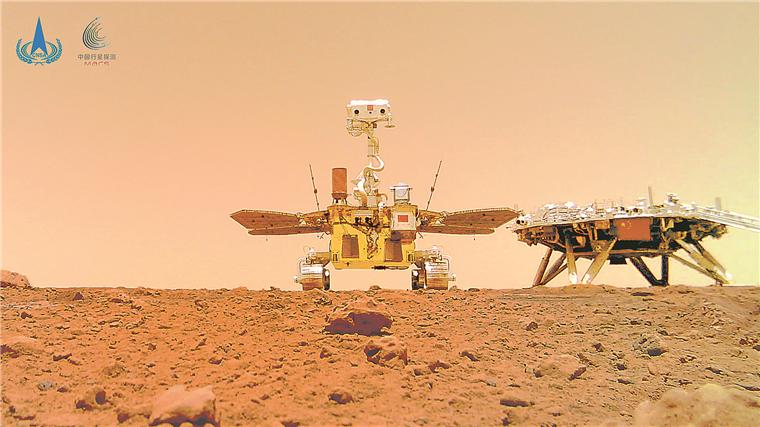 2021年6月11日,国家航天局在京举行天问一号探测器着陆火星首批科学影像图揭幕仪式,公布了由祝融号火星车拍摄的着陆点全景、火星地形地貌、“中国印迹”和“着巡合影”等影像图。首批科学影像图的发布,标志着我国首次火星探测任务取得圆满成功。