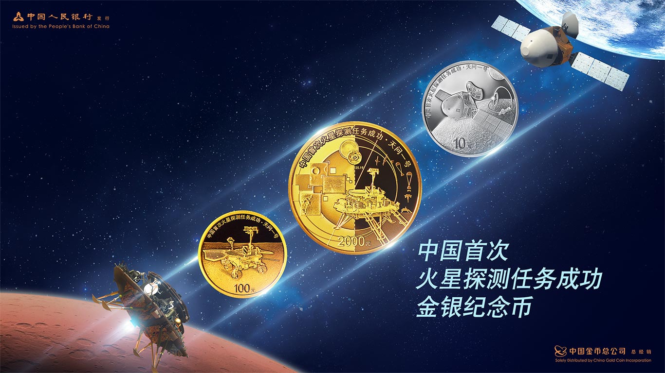 中国人民银行定于2021年8月30日发行中国首次火星探测任务成功金银纪念币一套。该套纪念币共3枚,其中金质纪念币2枚,银质纪念币1枚,均为中华人民共和国法定货币。