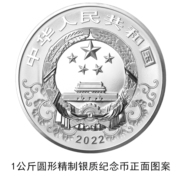 (九)1公斤圆形银质纪念币为精制币,含纯银1公斤,直径100毫米,面额300元,成色99.9%,最大发行量5000枚。