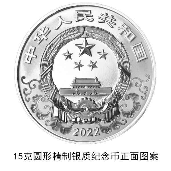 (十三)15克圆形银质纪念币为精制币,含纯银15克,直径33毫米,面额5元,成色99.9%,最大发行量300000枚。
