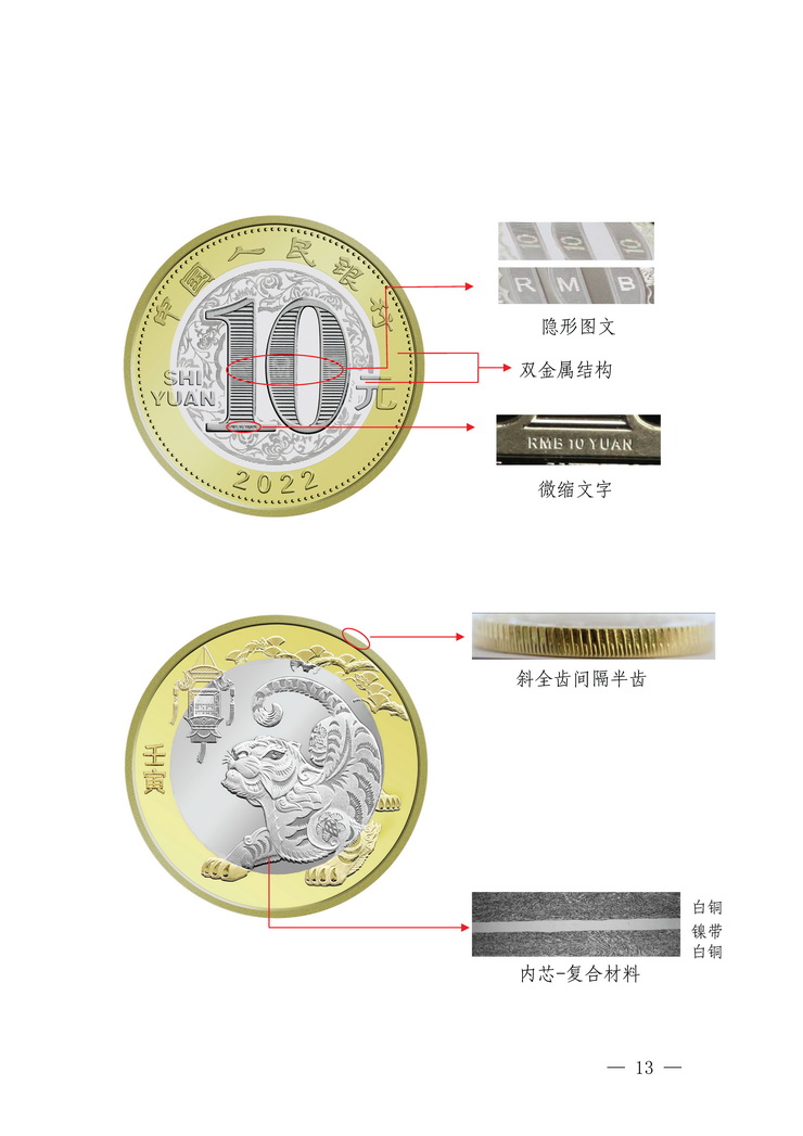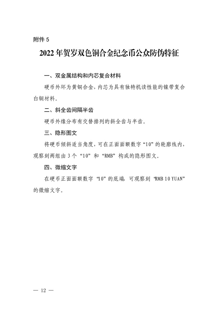 (四)双色铜合金纪念币公众防伪特征见附件5。