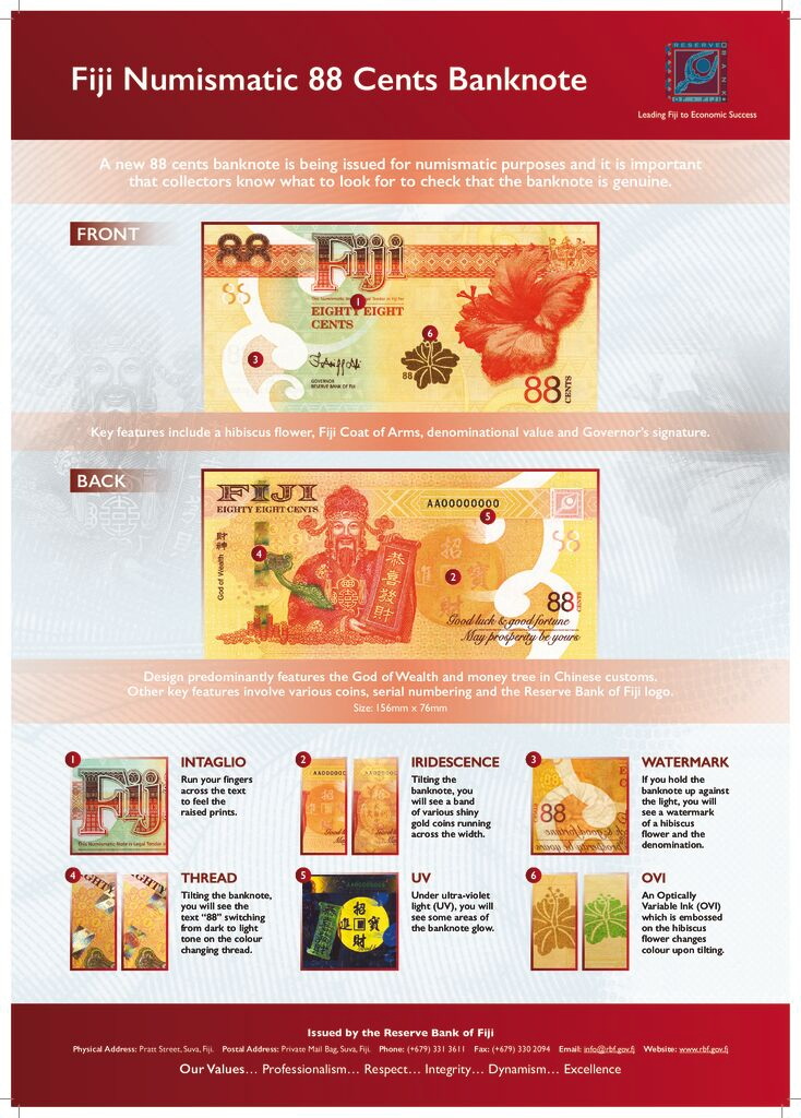 这88cents的面值也很有讲究。在我们的传统文化中,“8”谐音为发,寓意着发财、财富,此外这也是全球头一张面值88的纪念钞!