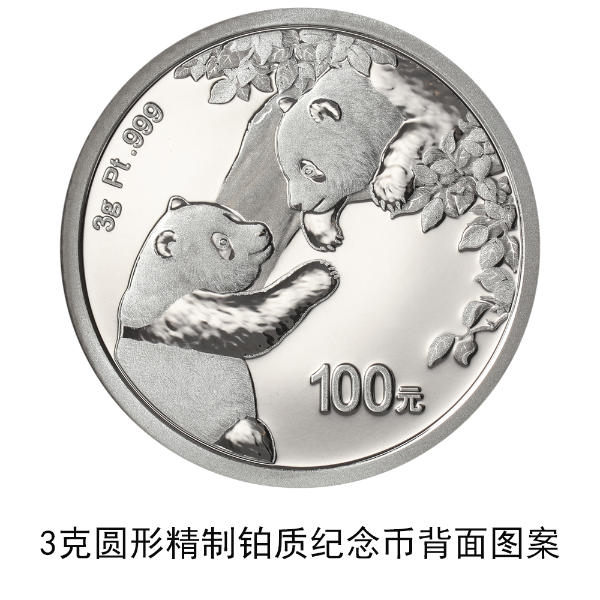 (十四)3克圆形铂质纪念币为精制币,含纯铂3克,直径18毫米,面额100元,成色99.9%,最大发行量30000枚。