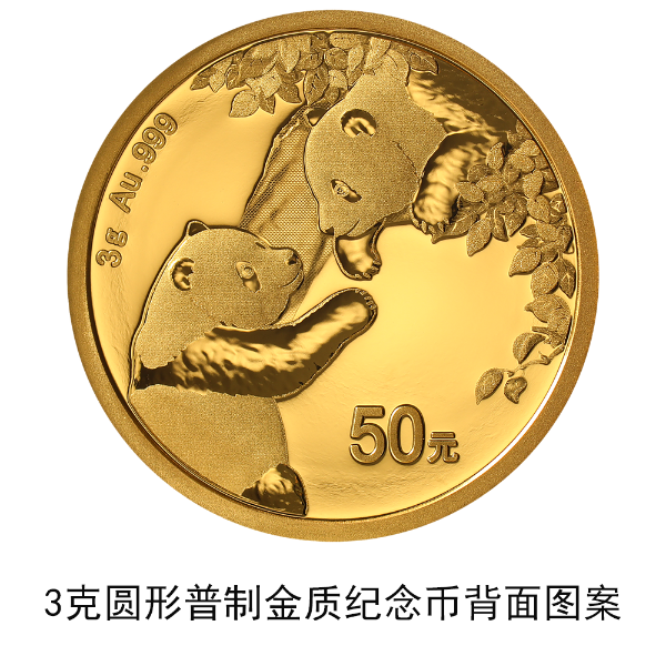 (四)3克圆形金质纪念币为普制币,含纯金3克,直径18毫米,面额50元,成色99.9%,最大发行量500000枚。