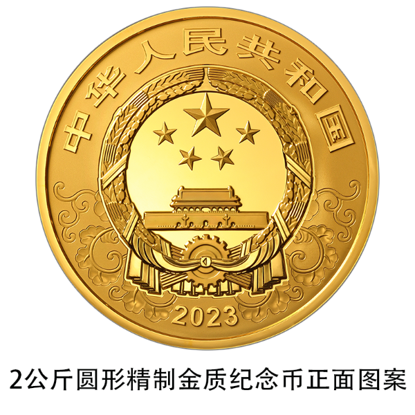 2公斤圆形金质纪念币为精制币,含纯金2公斤,直径110毫米,面额20000元,成色99.9%,最大发行量50枚。