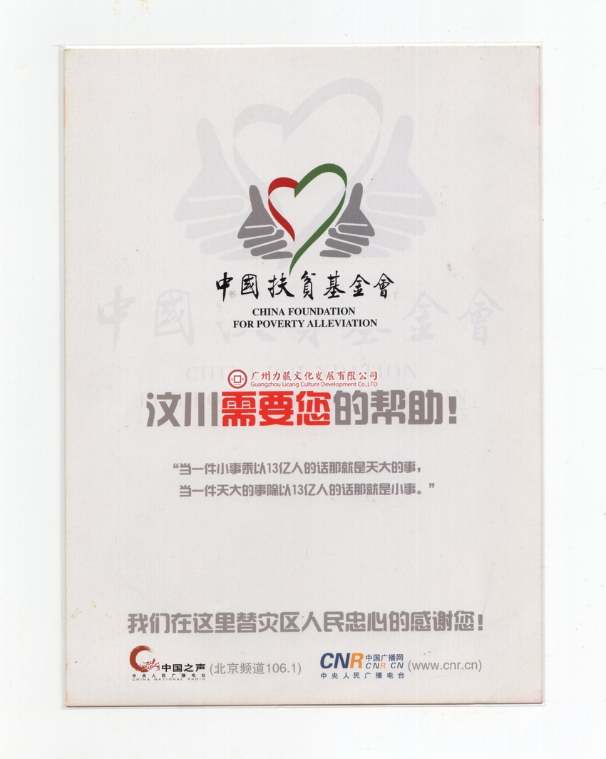 何道峰此间在“众人的力量——中国扶贫基金会汶川地震救灾工作报告会”上说,2008年5月12日,四川汶川发生里氏8.0级的特大地震后,中国扶贫基金会第一时间启动灾害救援紧急响应机制,于5月12日地震发生当晚发起了“我们心在一起——汶川地震紧急救援行动”募捐倡议。截至2011年4月30日,中国扶贫基金会接受汶川地震救灾资金物资合计4.87亿元人民币。其中,汶川地震发生后至2008年年底接受抗震救灾资金物资3.03亿元,2009年年初至2011年4月30日接受灾后援助专项资金1.84亿元。