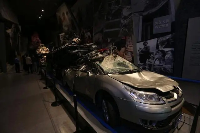 北川地震纪念馆中展览的严重受损汽车。该车车牌为:川FA8512,与灾难日期正好吻合。该车震后仍正常行驶,被网友称为“史上最牛汽车”。