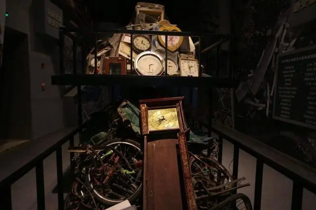 北川地震纪念馆展出的时钟,这些钟表无一例外的把时间定格在2:28分。2008年5月12日下午14:28分,突如其来的大地震摧毁了无数的家庭,很多人家的时钟被震落,电池被摔出,时间永远定格在灾难来临的时刻。