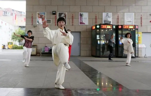 76岁的陈仕群(中)是在北川新县城生活的老北川人,北川羊角花业余舞蹈队的领队。地震时三位亲人遇难,自己也身负重伤。震前舞蹈队有40余人,一多半队员遇难,仅幸存19人。震后,为灾民身心健康、丰富生活,没有痊愈的她从板房区开始重组舞蹈队。现在,这支20余人的队伍活跃在北川新县城及周边村镇。