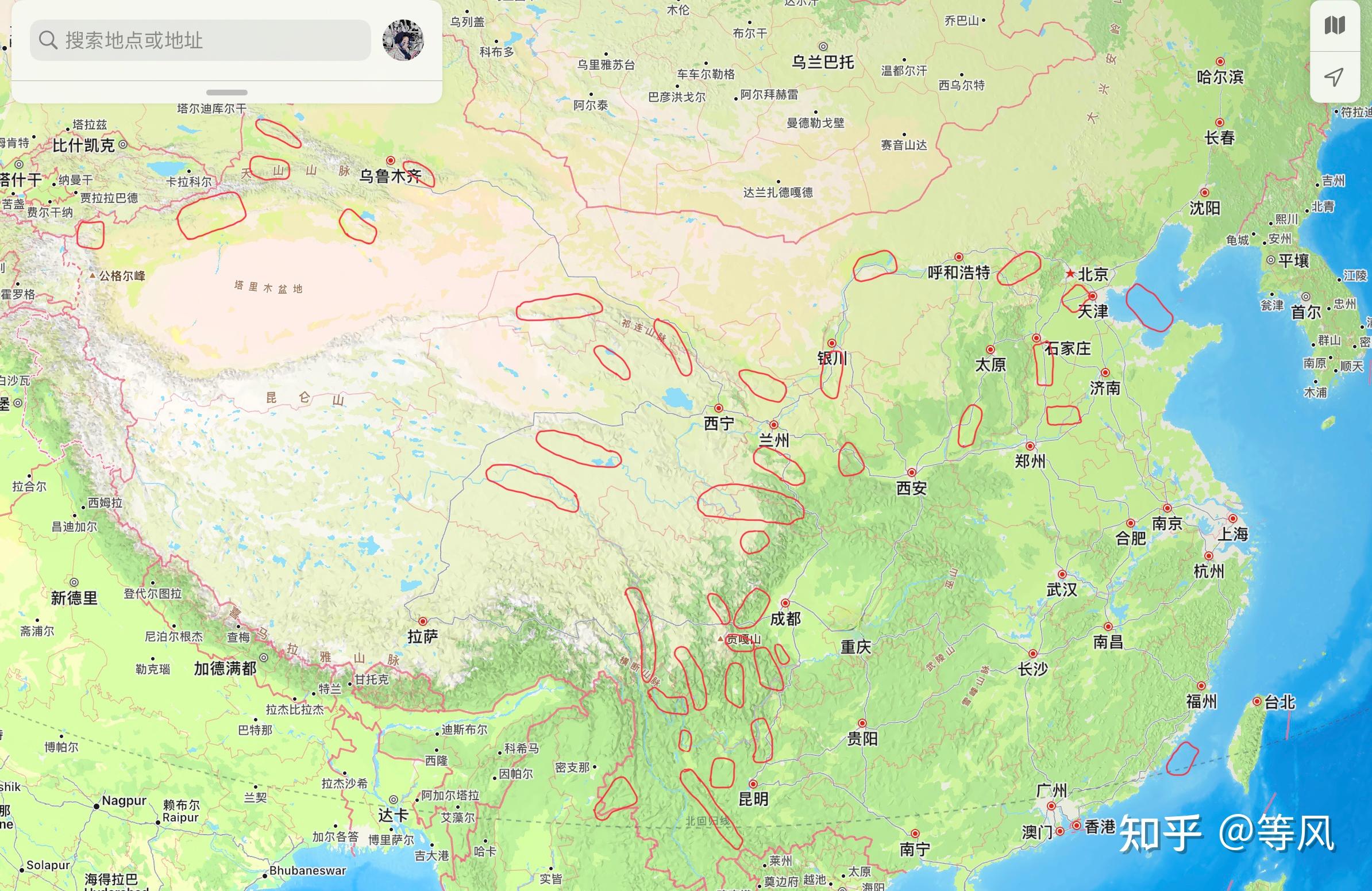 其他值得注意区域:博格达-鄯善一带、乌恰以西一带、阿克塞-肃北-玉门一带、甘肃青海交界的肃南-祁连-海北-刚察-海晏一带,昆仑山口-玛多一带、柴达木盆地德令哈-乌兰一带,玉树以西到-治多-可可西里东南一带。