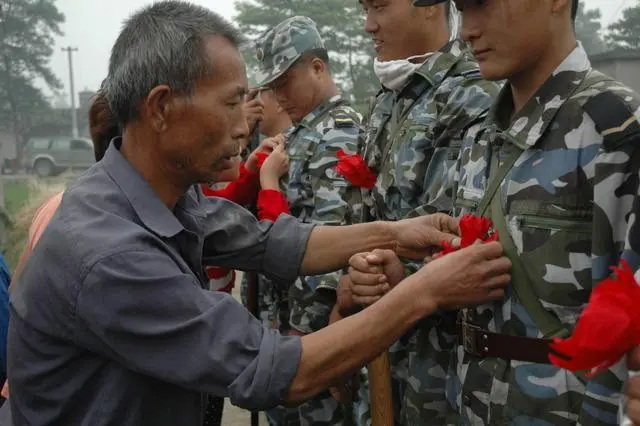 得知老人的媳妇和孙女在地震中遇难,儿子至今下落不明的消息后,女兵们难过得流下泪水。她们安慰老人说:“别难过,我们都是你们的亲人,我们一定会帮助你们的。”