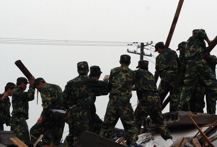 5月14日,空降兵某师在四川什邡地震重灾区抢险。