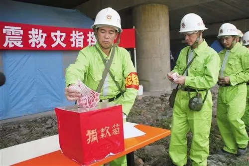 ▲当年广西消防官兵在汶川地震灾区捐款(翻拍资料图)