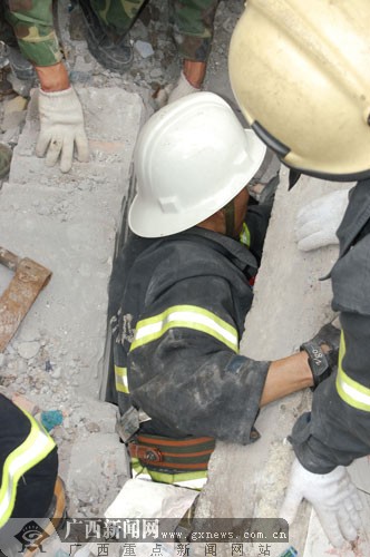 “我绝对不会放弃他的”这句话,让在场所有消防官兵和群众感动不已。在以后的救援工作中,这句话成为整个广西消防官兵抢险救援的口号。