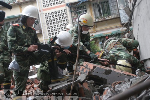 而现在南宁消防支队的消防官兵,无论是救援器材还是救援技能,都得到了很大的提高。黄胜新说,在政府部门的帮助下,他们搭建了模拟的地震灾场,用于官兵的实战演练。由于装备得到了很大改善,消防支队现在组建了两支地震救援队伍,包括重型设备队和轻型设备队,不仅能够进行大型的楼房救援,还可以轻装徒步几十公里到达灾区开展救援行动。在南宁市发生的楼房坍塌灾情中,救援队伍发挥了巨大的作用,很快就将被困人员救出,成为抗震救灾主力。