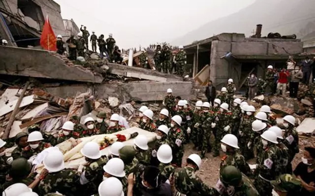 青川初级中学的宿舍在地震中倒塌,当中还有近四百多名的学生因此掩埋在废墟当中。
