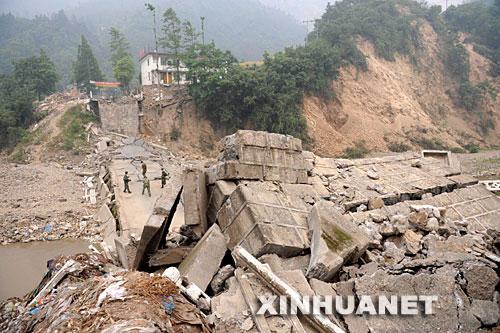 这是北川县陈家坝镇坍塌的桥梁(5月17日)。 新华社记者杨世尧摄