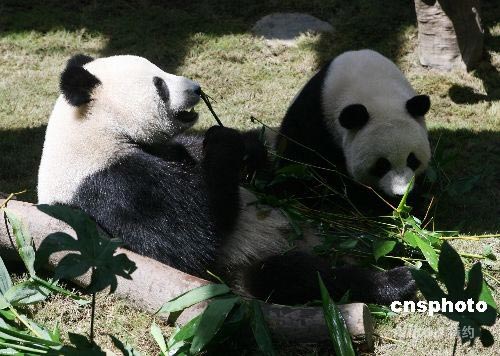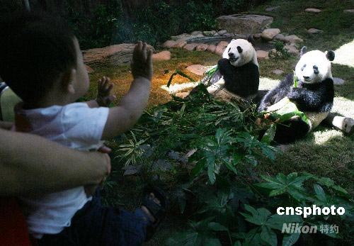 大熊猫乐乐、盈盈安家香港海洋公园一周年