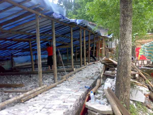 2008年7月2日,帮助失去爱子的湔氐镇桐林村十七组灾民尹帮禄搭建临时过渡房