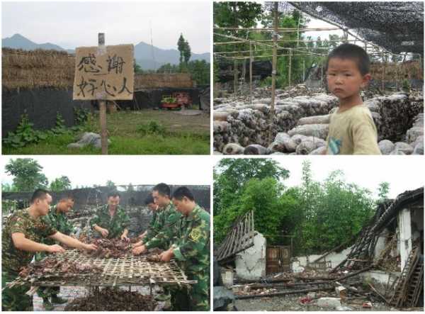 2008年6月19日,帮助湔氐镇龙居寺村灾民清理震毁的木耳棚