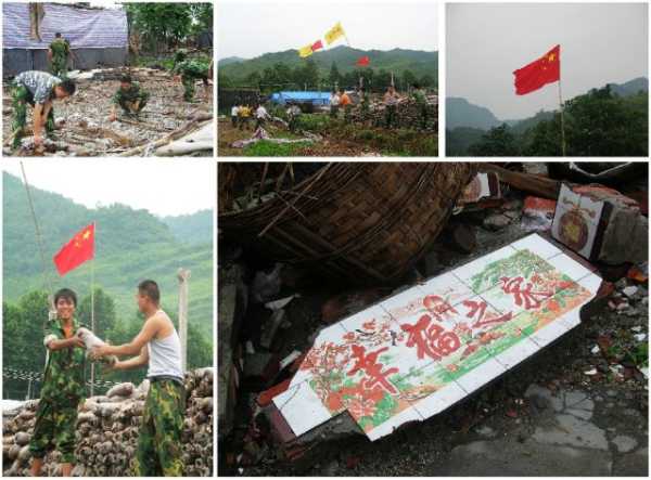 2008年5月23日,帮助八角镇楠木村灾民搭建帐篷、清理废墟、疏通堰渠