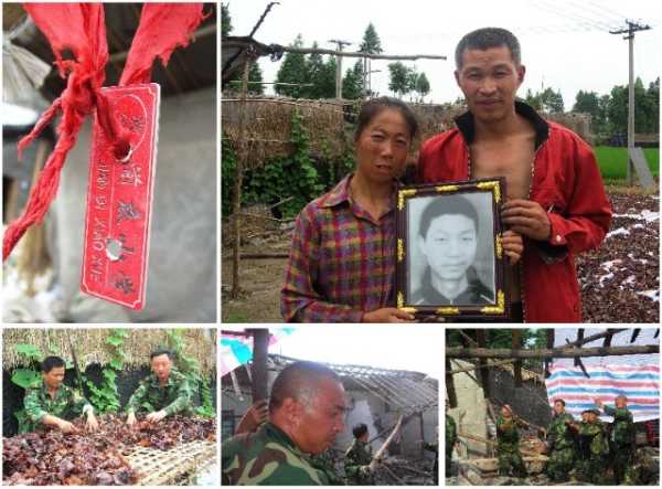 2008年6月24日,帮助湔氐中学遇难学生王张家抢收木耳;