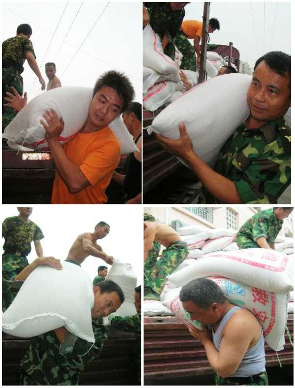 2008年8月14日,下卸救灾粮食
