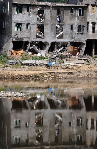 青川县红光乡一栋被损坏的民居(5月15日摄)。记者从四川省青川县抗震救灾指挥部了解到,截至目前,汶川地震已造成青川县1000多人遇难,上万人受伤。由于该县关庄镇3000万方的滑坡使得青川县通往马公乡、石坝乡、观音店乡、曲河乡四个乡镇公路阻断,这四个乡镇灾情至今不明。 新华社记者 江宏景 摄