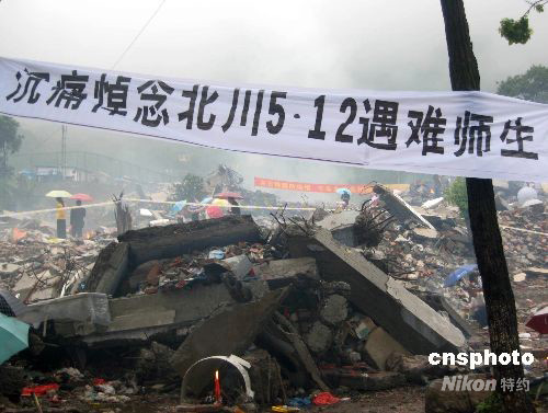 8月19日,是“5·12”汶川大地震“百日祭奠”活动日。连日来,地震重灾区北川羌族自治县民众纷纷前往灾难现场祭奠遇难亲人。图为北川中学祭奠现场。中新社发 肖青 摄