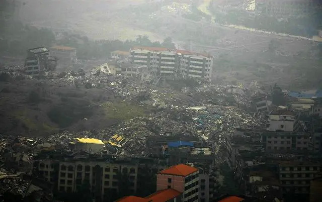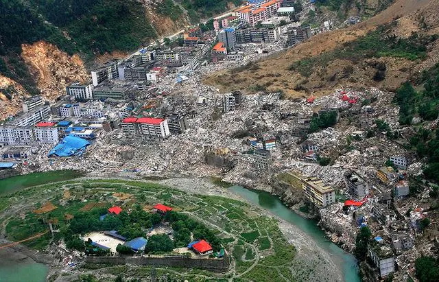 四川省绵阳市北川县受到地震的高强度破坏,大量房屋在震中倒塌,瞬间成为一片废墟,1万5千余人被这场突如其来的灾难夺去了生命,受伤近3万人,幸存下来的完整家庭不足一成。