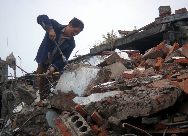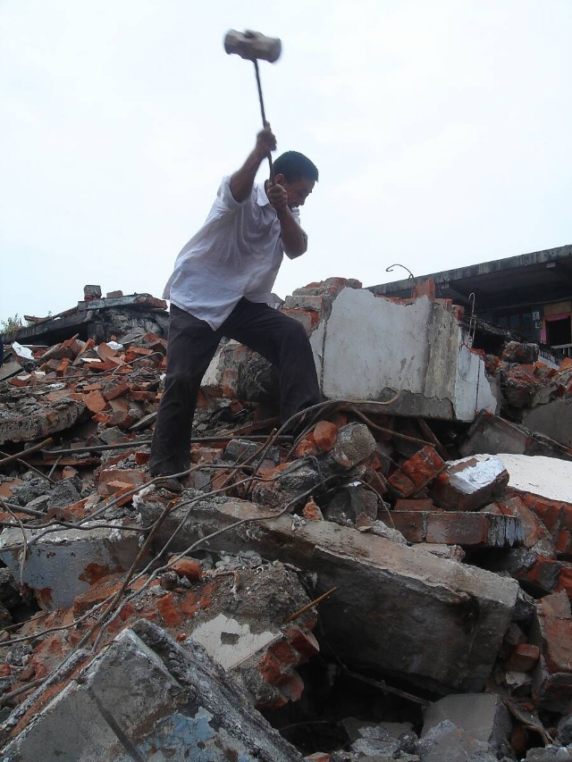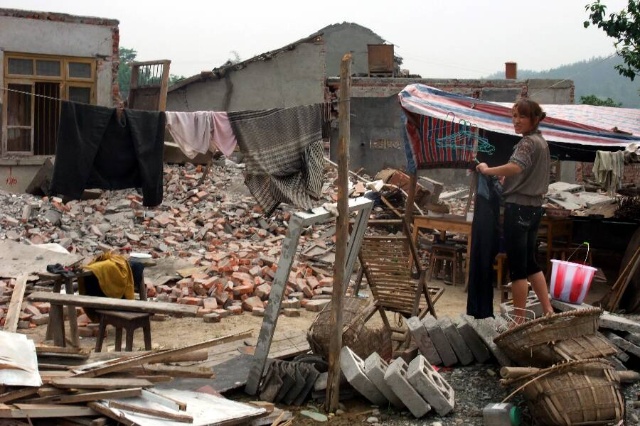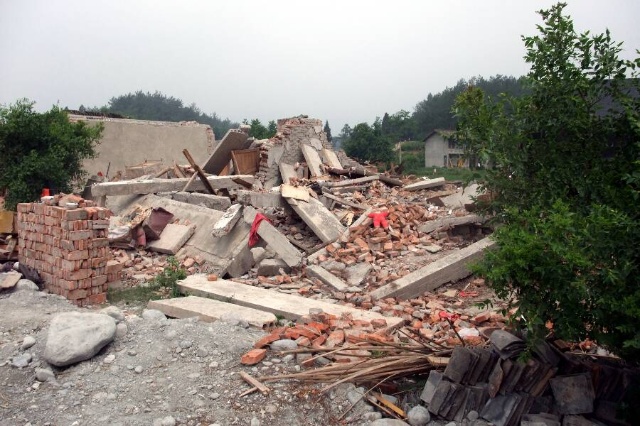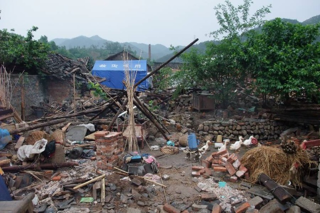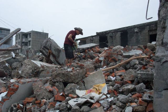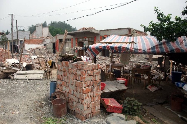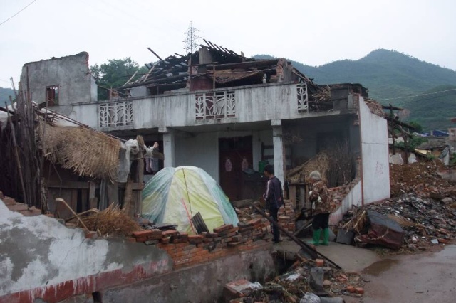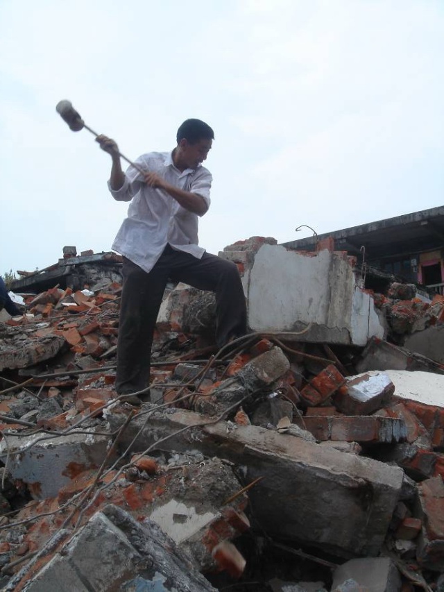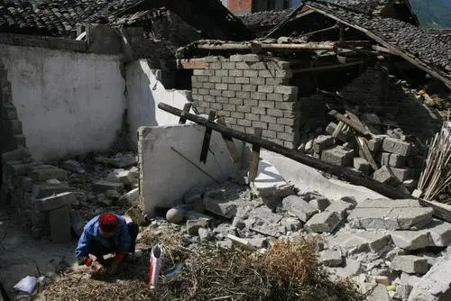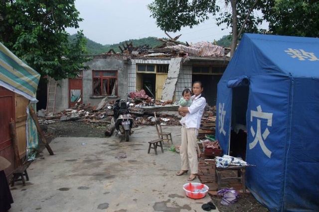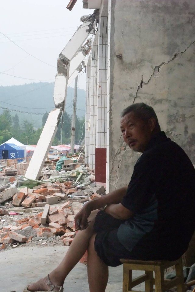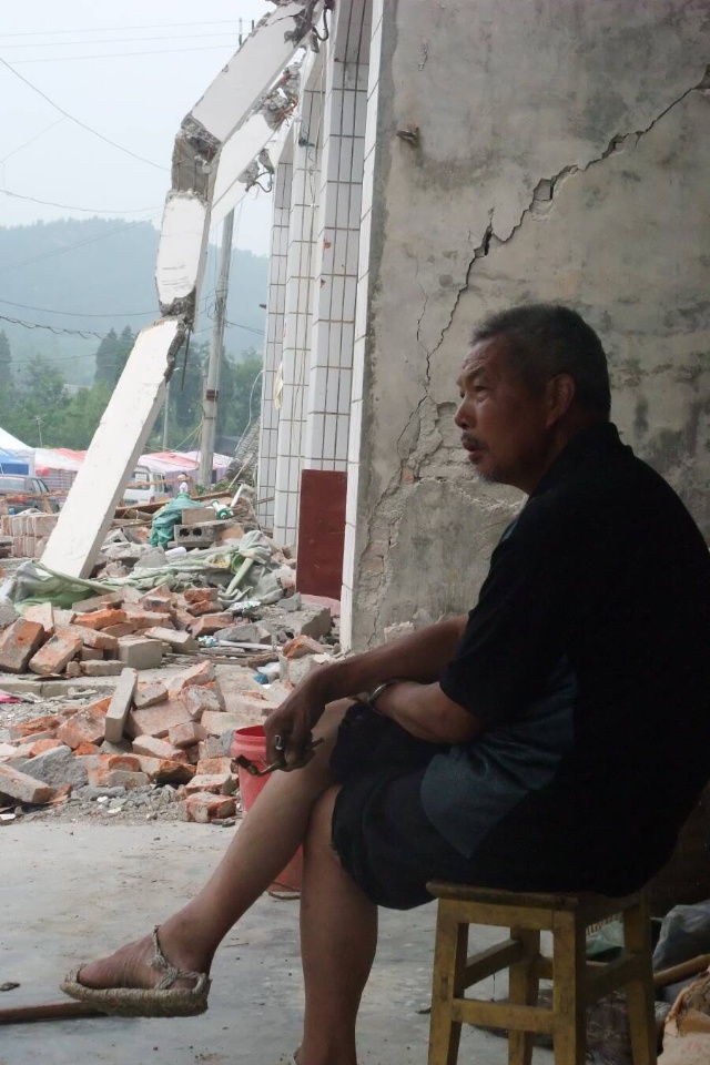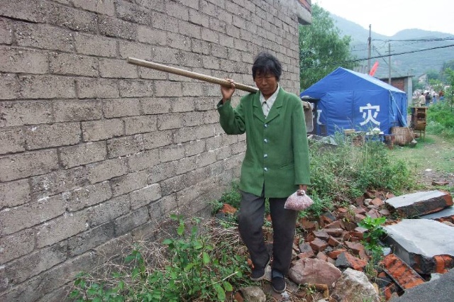2008年5月14日,四川江油,一名老太太说起当时震情失声痛哭。(作者:钟敏)(图片来源:CFP)