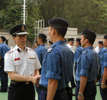 消防处处长卢振雄15日在东涌消防局鼓励候命出发的第二批搜救队队员。(图片来源:香港特区政府网站)