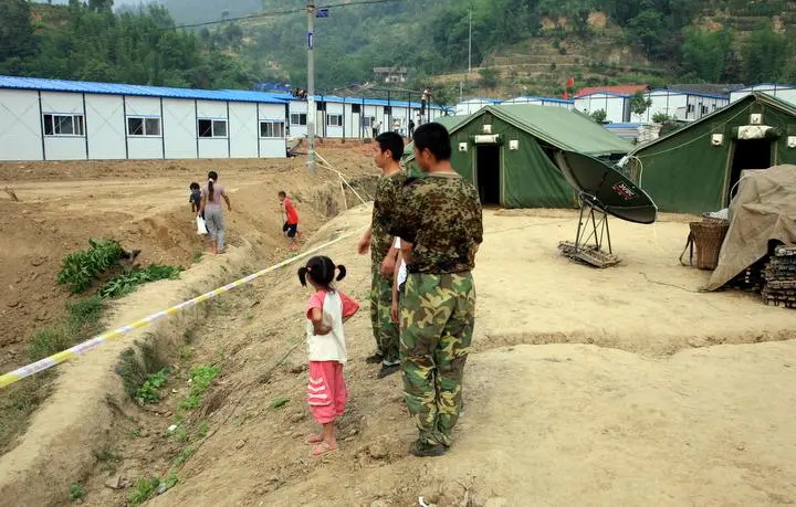 由于地震严重,山坡下的陈家坝已经“矮”了下去,仅存的几座楼房也不同程度倾斜着。随后,政府组织的第一批救援队来到陈家坝,由于物资有限,老师们把发放的水和饼干全部分到了孩子手中。即使这样,一个十几个人的班才分到了1瓶矿泉水,每个孩子只分到了3片饼干。