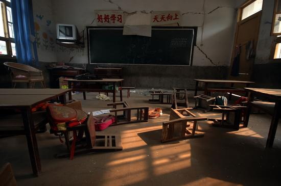 12日14时28分发生地震时,学生们正在上课,一时间学校2座三层教学楼大幅晃动,导致墙皮震落、楼体倾斜,师生无法站立,学校老师们第一时间呼喊学生趴到桌子下面进行躲避。第一波震动过后,老师们紧急将受惊吓的学生转移到学校的开阔带,并进行人数清点。正当老师们进行人数清点时,余震又将学校边上的部分山体震塌,一时间沙土弥漫,伸手不见五指。