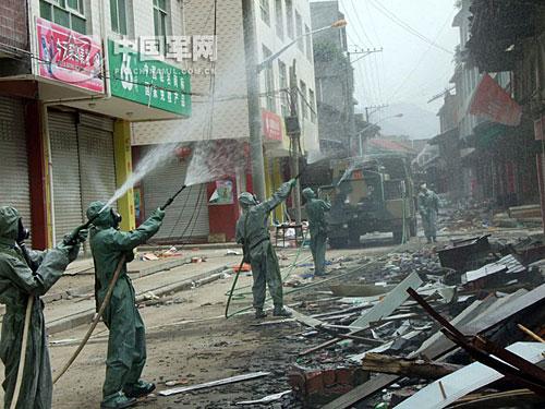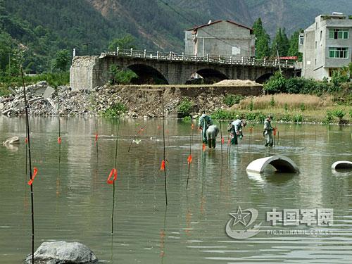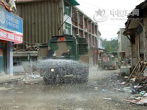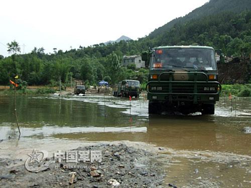 第二炮兵抗震救灾第四救援大队的一支分队第七次来到北川县陈家坝乡原乡政府所在集镇外,计划对该地再进行一轮强化消毒。谁知,一夜之间堰塞湖水位上涨,漫过了桥梁坍塌后临时修建的便道,车队行进受阻。
