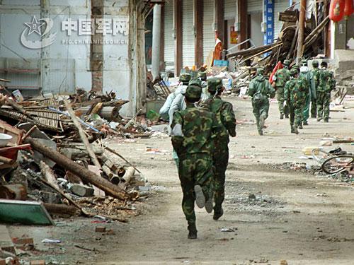 就在这支部队进入北川县城的一刹那,幸存的受灾群众拼命鼓掌,流着热泪一遍遍高喊“解放军万岁!”“人民军队万岁!”……