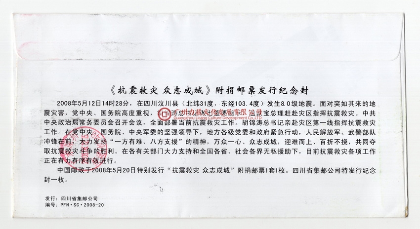 四川北川擂鼓镇邮局,是地震重灾区,2008年6月1日为地震后恢复营业的首日,距离5月12日地震发生后20天,擂鼓镇邮局比北川县城邮局晚2天恢复营业