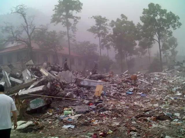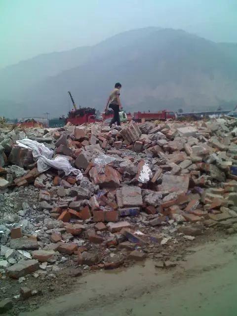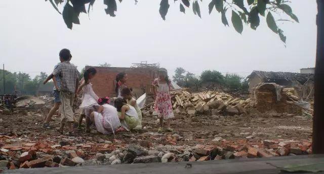 安县黄土镇的孩子们,在学校的废墟上玩耍