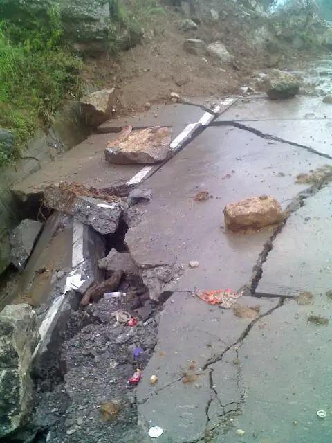 去北川擂鼓镇的路上,路边落石仍时而会滚落下来